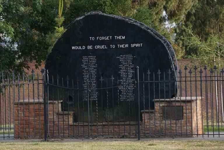 It seems that a local resident named Jensen Hallstrom has been jumping a short wrought iron fence to make homemade repairs to the big slab of redwood dedicated to veterans. It’s in Hillcrest Park not far from the Isaac Walton lodge.